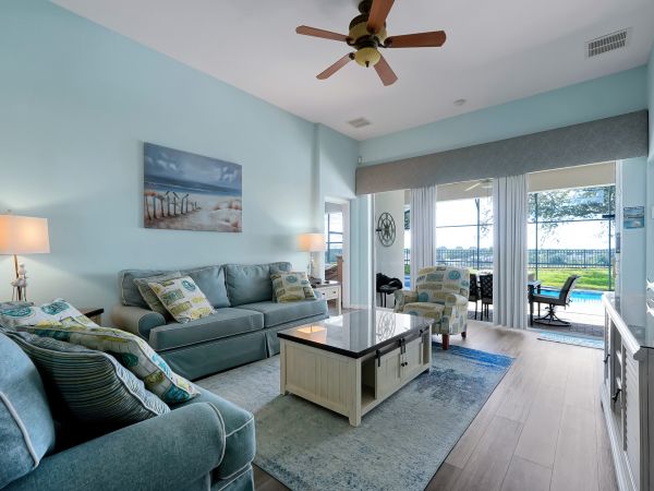 5 bed villas at Windsor Hills are all located within the main “Enclave” section of the resort beyond the clubhouse and pool area as you enter through the main entrance gate. 5 bed villa floor plans come in two standard arrangements. Both are on two levels with variations in the location of the bedrooms between ground and 1st floor level. All 5 beds come with private pool and spa area. And like all private pools at Windsor Hills it is screened which is useful for avoiding bugs during summer months. Choose your villa location based on proximity to the main resort amenities such as the clubhouse and community pool area, the kids play area and the tennis courts. 5 beds are a popular choice at Windsor Hills. You'll find a selection of both floor plan styles below.