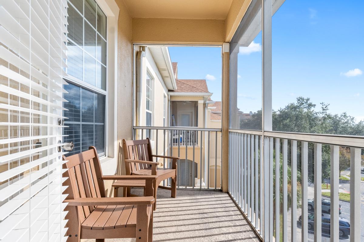 Step out to your peaceful screened lanai, furnished with two Adirondack chairs?perfect for morning coffee or unwinding after a day at the parks.