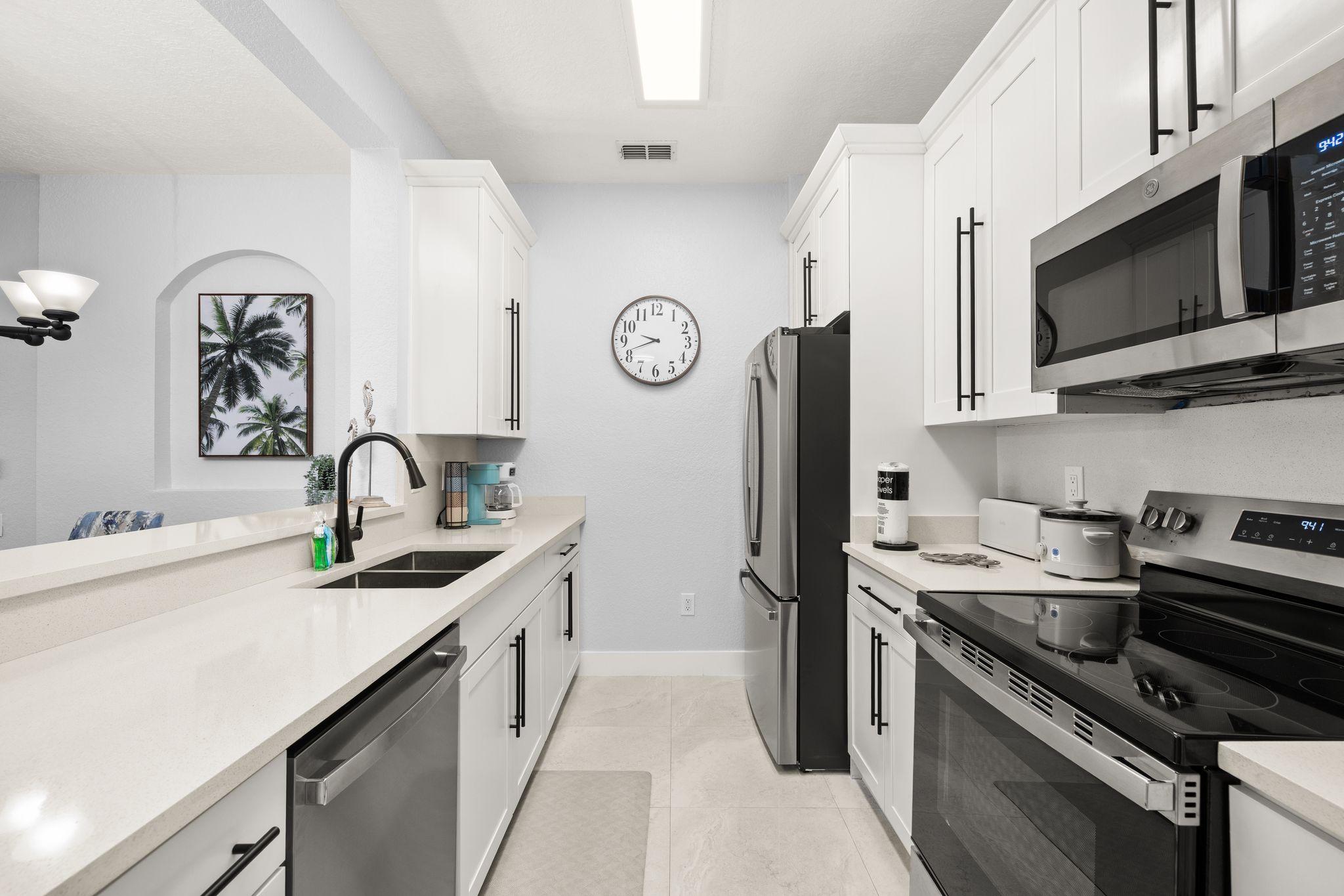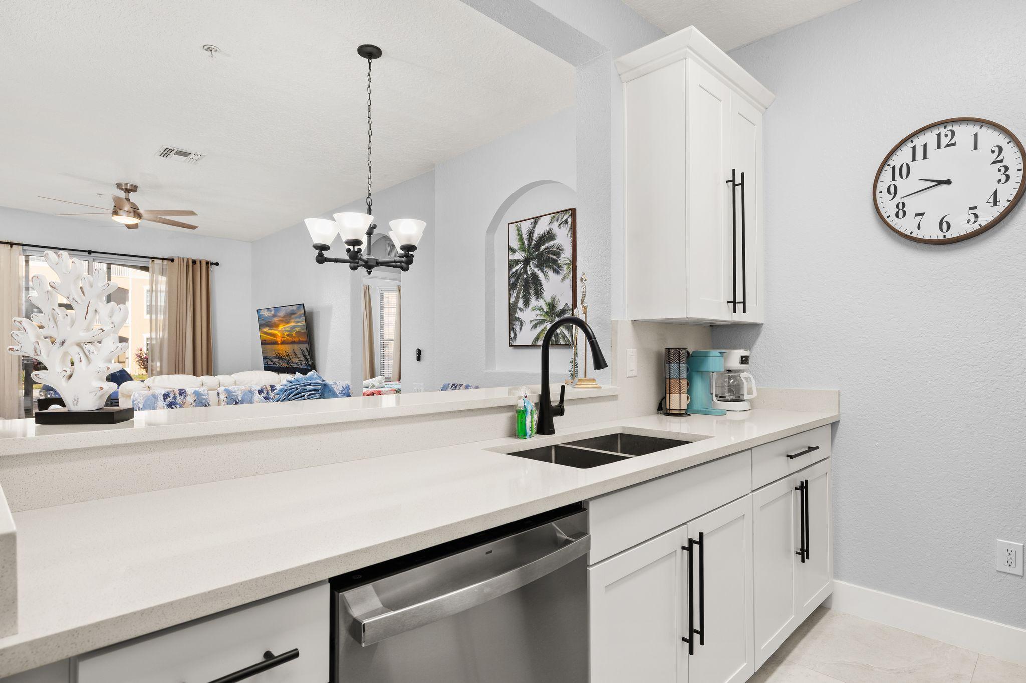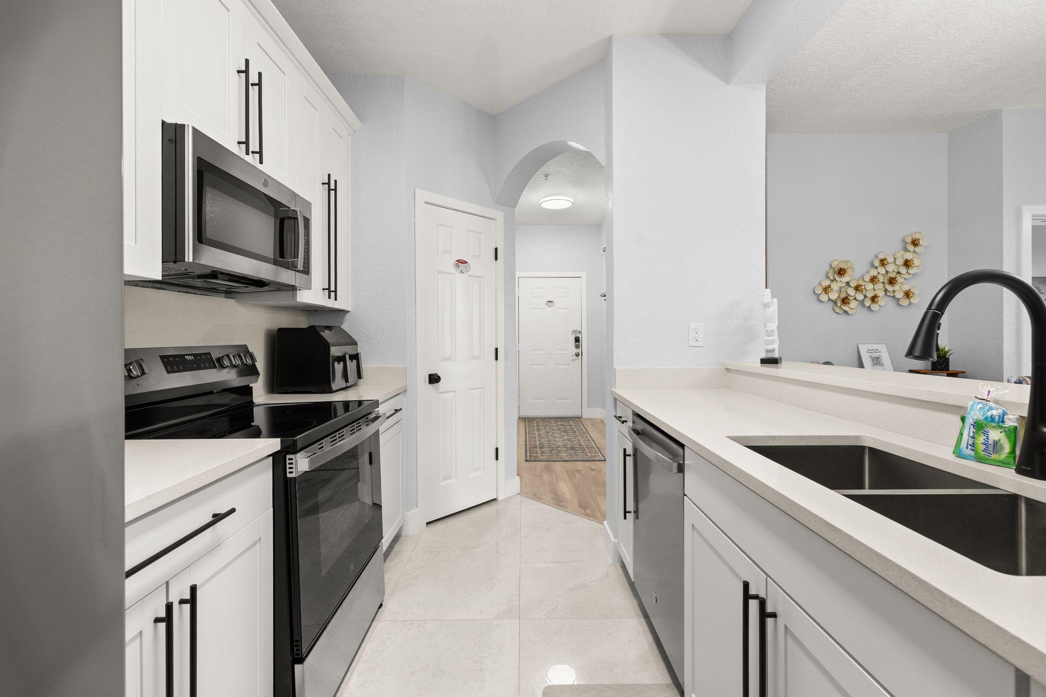 The kitchen includes updated appliances, full cookware, and everything you need for quick breakfasts before rope drop or relaxed dinners after fireworks.