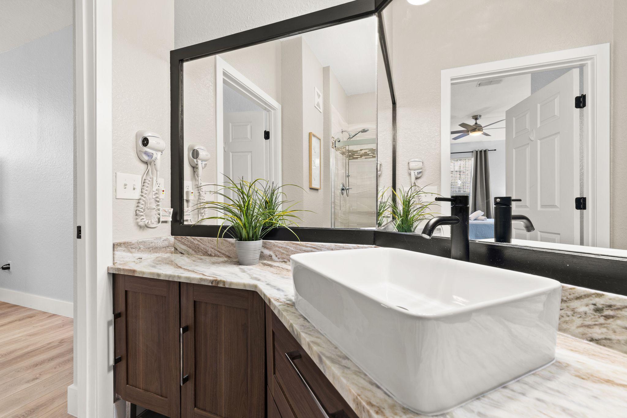 Comfortable bedrooms and spa-inspired bathrooms ensure everyone gets real rest between busy Orlando days.