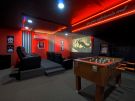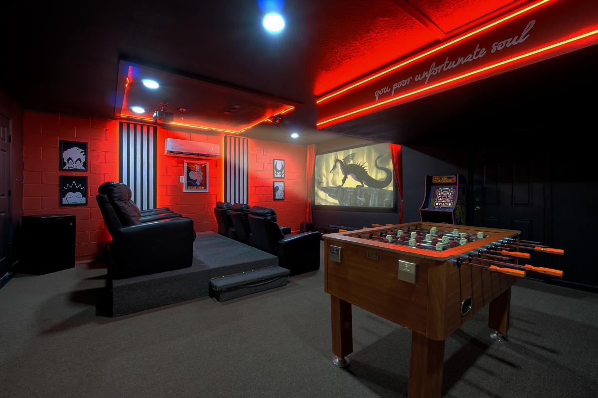 House is equipped with free high-speed WiFi through Blue Stream Fiber. Beautifully appointed living/family room features a 60” TV with Blue Stream Fiber TV. Converted garage with A/C features private Villains themed home theater with 110" projector and seating for 6 for more family time enjoyment. Plus foosball table and arcade! Full size washer and dryer.