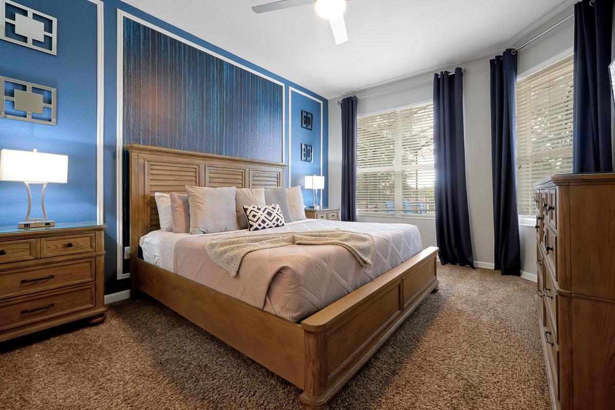 5 stars “ Everything was great! The owners were very friendly and quick to respond. We had one minor issue with the pool light being out and they were quick to respond and repair it. The management team was very friendly and professional when they stopped in to assess the situation. The house is as described and well maintained. I loved that there were towel racks in most of the bathrooms, it seems like a small thing but we have rented so many houses that don’t have them and it is always such an inconvenience, you can never have enough racks and hooks in the bathroom when you are traveling. Another nice touch is that they have curtains and not “Florida blinds” for the sliding pool doors (if you know, you know!) The kitchen was well stocked and had everything we needed. There were plenty of items for kids (high chair, booster etc) under the stairs, we didn’t use any of them but it was nice to see they were available if needed. The beds were very comfortable and the Rokus on all the bedroom TVs were great for being able to log into our services and stream shows. There were a lot of nice little touches like power cords with chargers placed conveniently throughout the house. This is a really nice property and our favorite one we have rented so far at Windsor Hills. Great location, great owners, and great property!”