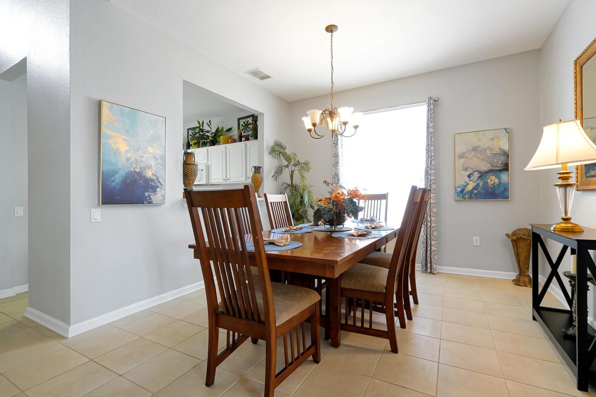 Kitchen is well-equipped to prepare meals for large families in style and includes numerous small-appliances such as toaster, blender, crock pot, and coffee maker. The kitchen also has a breakfast nook that seats 4. Dining room includes seating for 6 and is located beside kitchen and features a pass through window.
