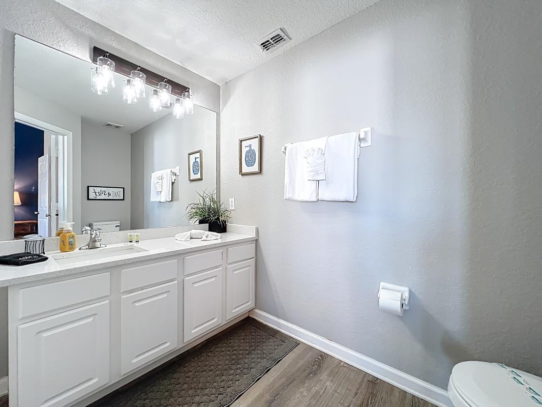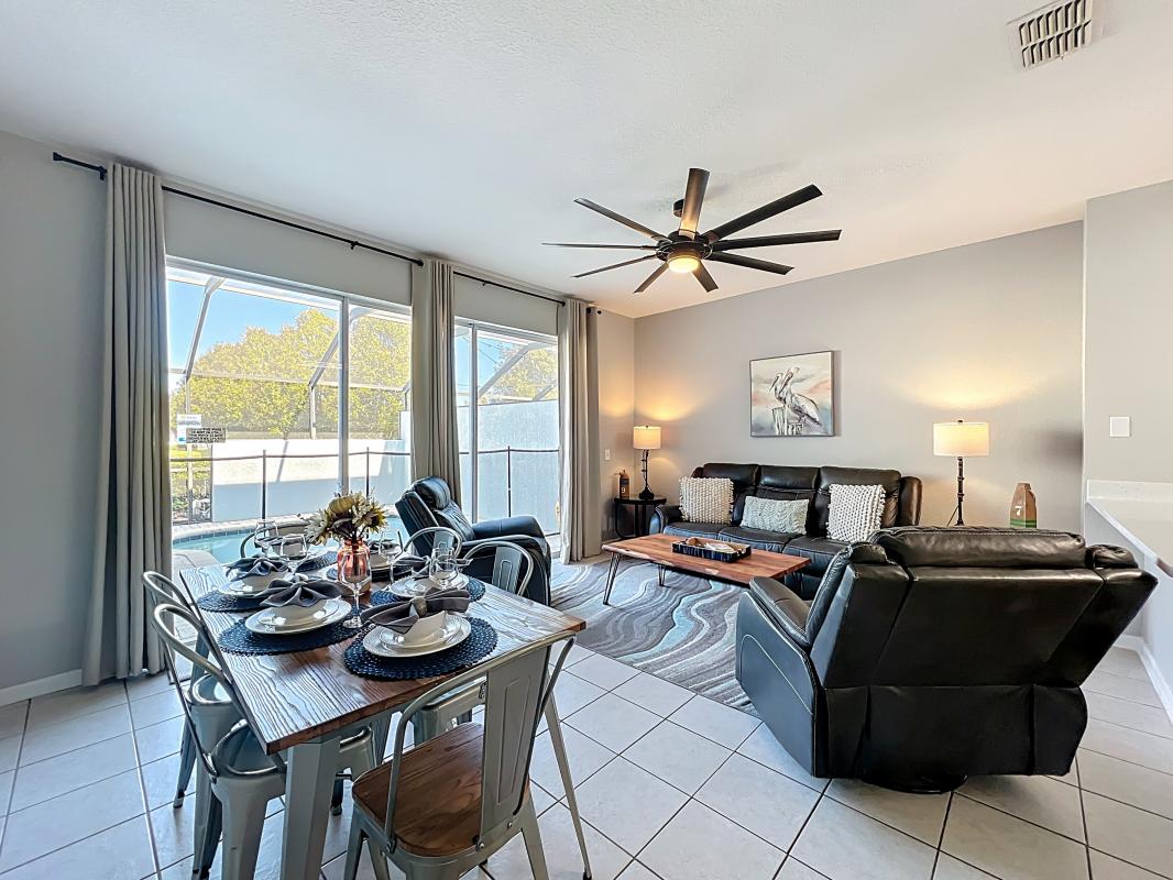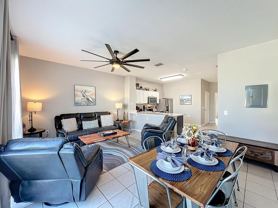 Our family of 4 went in vacation with our friends, a family of 3. It was planned that our firat week was at a Disney Resort and 2nd week was at this rental property. And honestly wish we had stayed both weeks at this rental property! The kids loved the Toy Story themed room and we all had space to move around without being toppled on each other. I liked that their bedroom was on the 2nd floor so we were able to stay up and watch a movie without the noise disturbing them. Great kitchen space with everything we needed to male great meals. There is a Kerig coffee machine which is our preferred way of making coffee. Every morning my kids went straight from PJs into swimsuits to jump in the private pool.... and the clubhouse pool is a short walk away. I have one child who is sensitive to chlorine... when the attendee to the pool learned this on our 2nd day while checking the water he added what was needed to make it better for her as he said he also has a child sensitive to chlorine. I appreciate the attentiveness to those details. The little water park at the clubhouse was a huge hit. And location is so close to a variety of parks - while all the Disney parks are so close, during this 2nd week stay we went to Seaworld and Aquatica as well as Disney Springs with little drive time.
