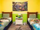 The kitchen has stainless steel appliances, with plenty of counter top space. Cooking spices, trash bags, kitchen roll and other small amenities have been provided for your stay. Open space for a comfortable dining table, with plenty of seating in the living room which has fan to help beat that Florida heat. The first king bedroom has its own private en-suite bathroom. Off from the living room is a fun decorated Finding Dory twin bedroom. A few books for the kids to read at night, plus a TV to keep them entertained. The third bedroom is also a king bed, with a joining door to the main shared bathroom. Huge walk in closet for all your storage needs. Main shared bathroom has a few amenities just in case you need them. A balcony for you to enjoy the beautiful weather.