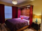 HADES' UNDERWORLD is on fire! Blue flames surround you in lavish luxury and will delight every minion who crossed the threshold. Blue flame lighting brings the journey to life. The queen bed features custom lighting and is a sight to behold. No Pain or Panic here...just a lot of fabulous. Ba-Boom!