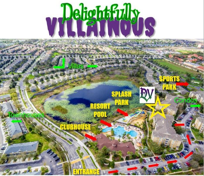 Delightfully Villainous is strategically located on the second floor of Building 7, overlooking the fabulous Windsor Hills lake and just a few steps from the pool, water park and clubhouse.