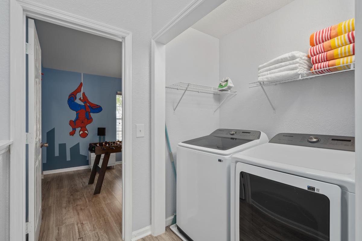 After a fun-filled day exploring Orlando?s theme parks, unwind on your private screened patio or take a refreshing dip in your south-facing splash pool (complimentary pool heat included!). The pool area includes a baby safety fence, making it ideal for families. Enjoy free high-speed WiFi and Smart TVs in every room, along with thoughtful extras such as a Pack ?n Play, high chair, stroller, and games for kids. Our villa is professionally managed, with enhanced cleaning protocols and 24/7 guest support to ensure a spotless and stress-free stay.
