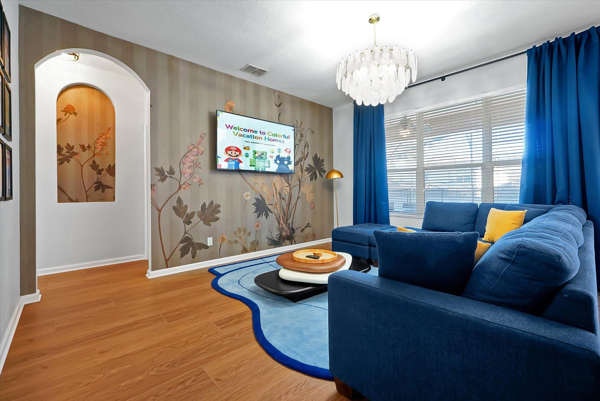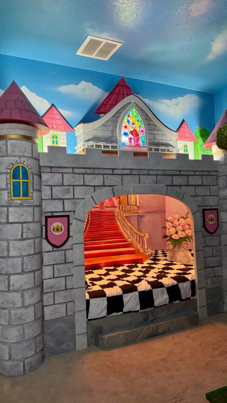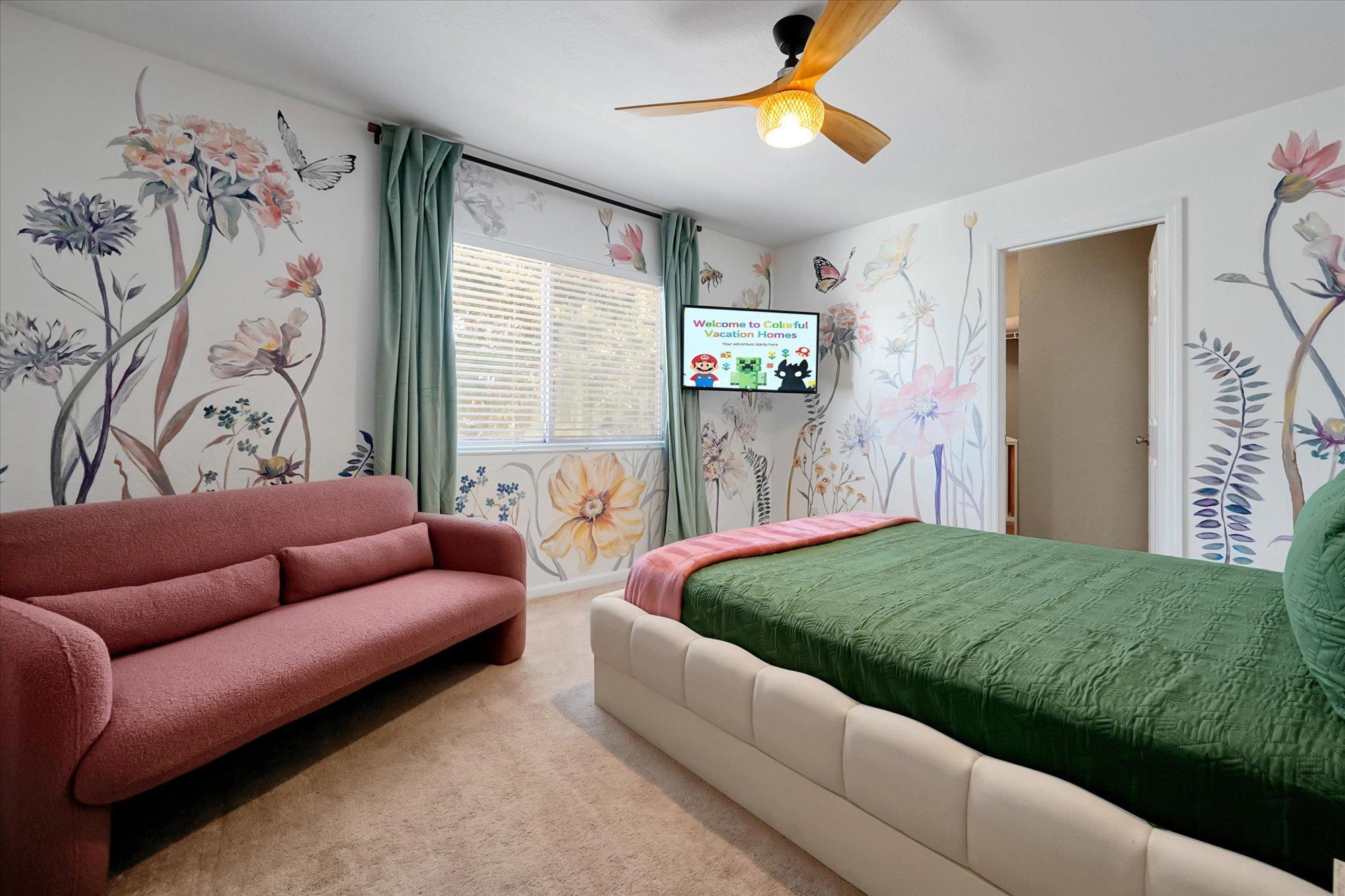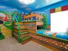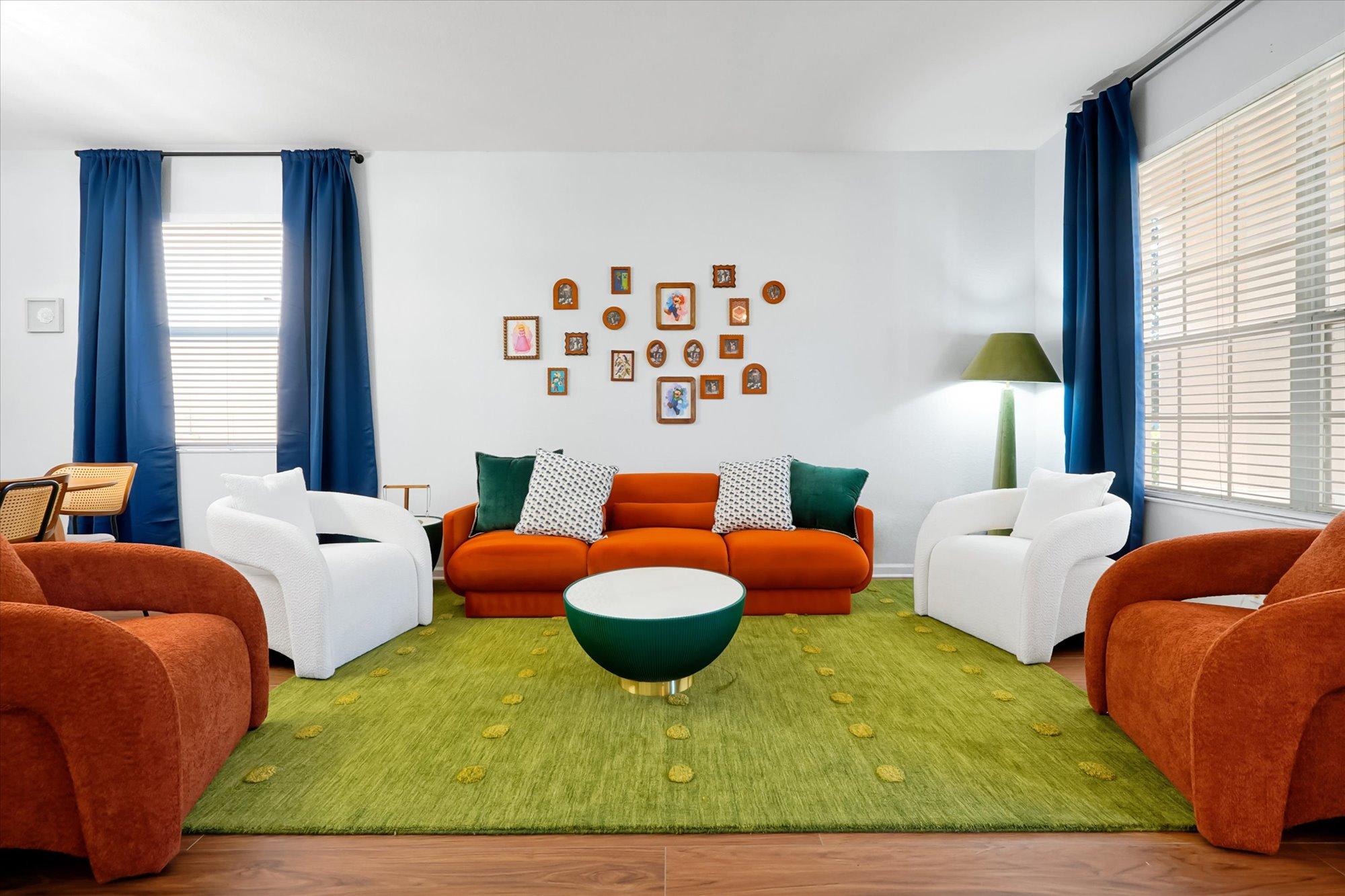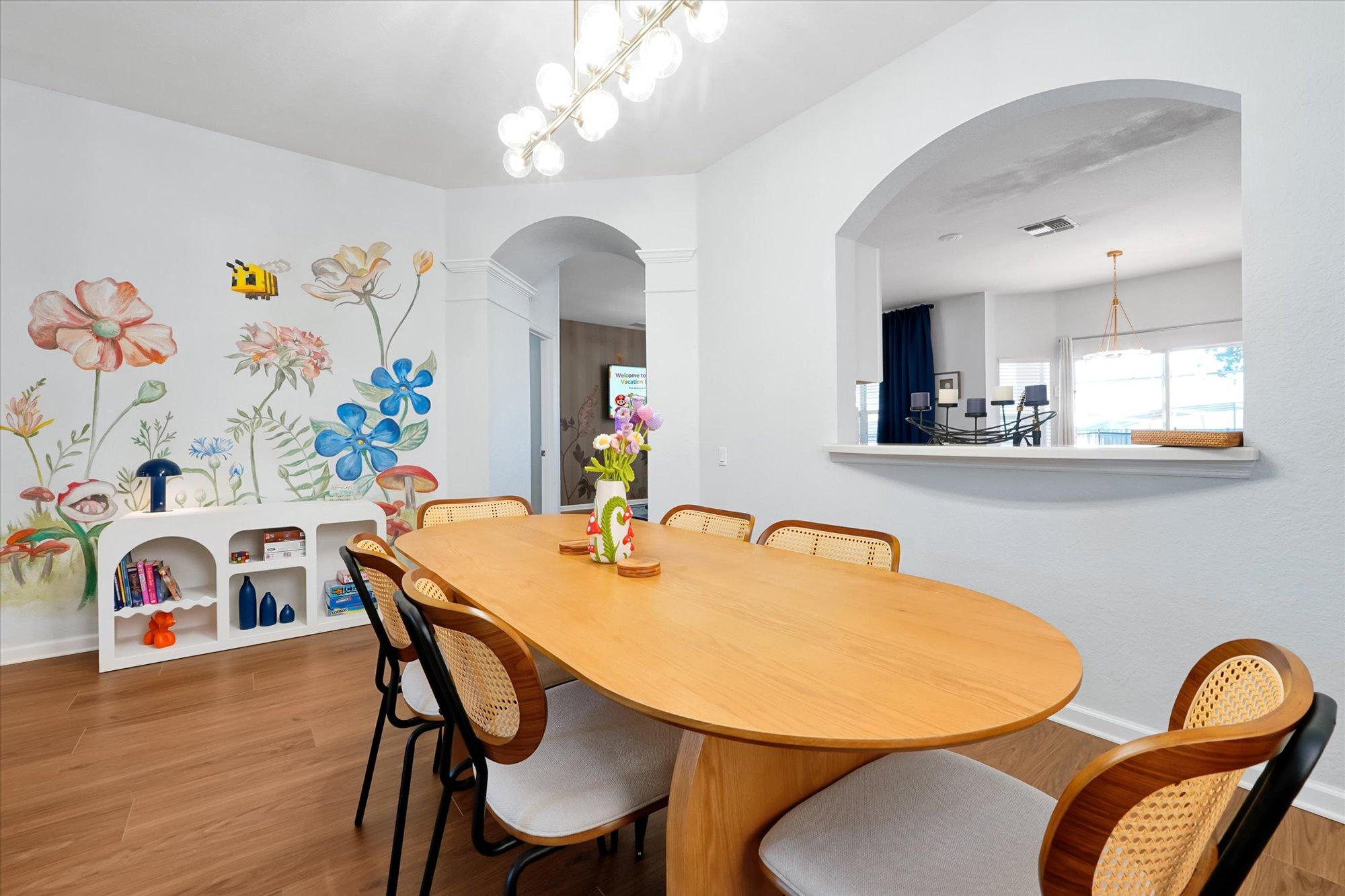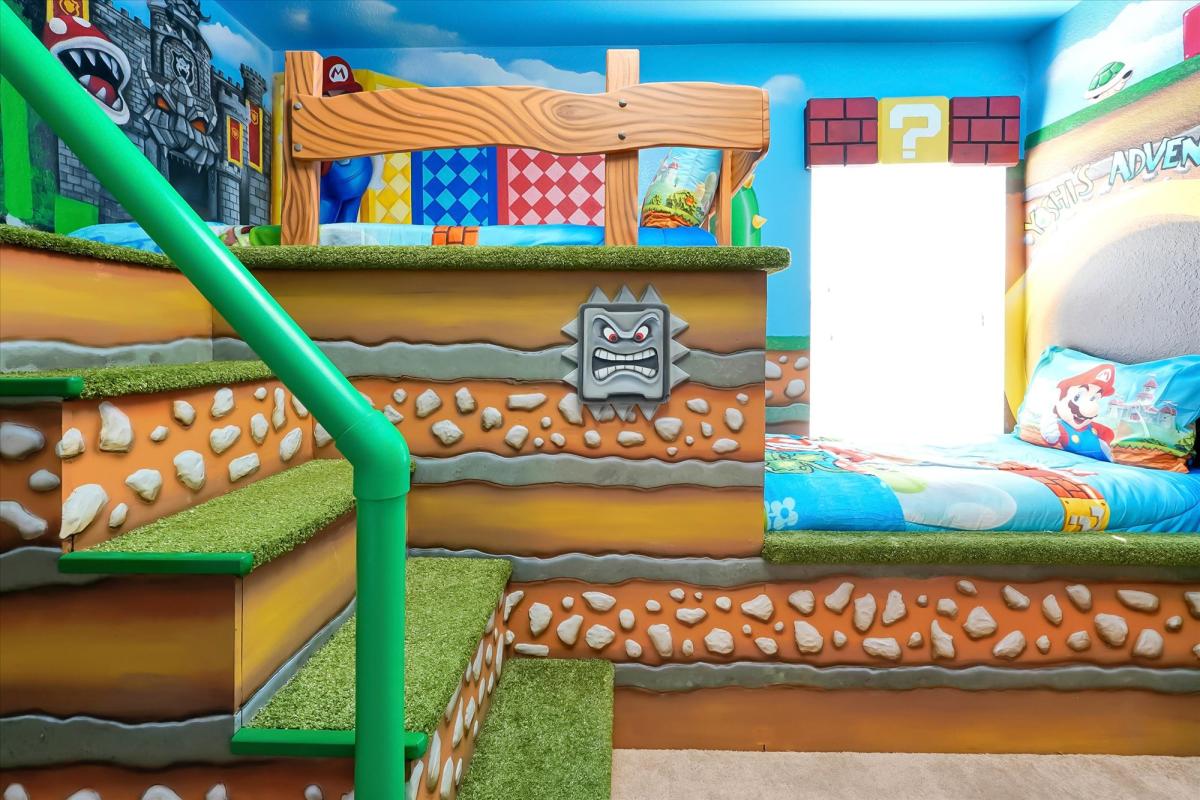 Welcome to Colorful Haven, your vibrant family getaway near Disney! Kids will love the themed bedrooms with bunk beds and an exciting Minecraft themed game room packed with arcades and lots of fun games. Adults can enjoy sleek modern furnishings throughout and unwind in upgraded bathrooms. This spacious villa offers a private heated pool, movie nights, bbq grilling, and endless fun in a peaceful neighborhood. With colorful decor and attractions for all ages, it?s the ultimate Orlando retreat!