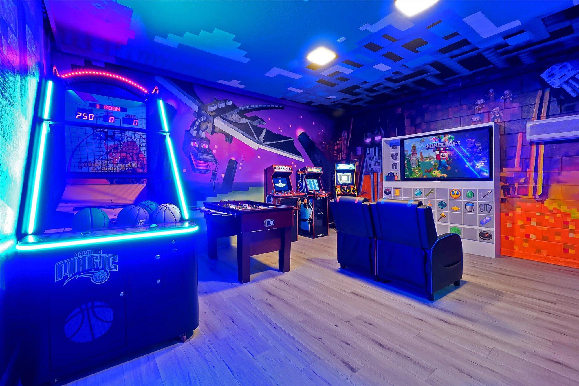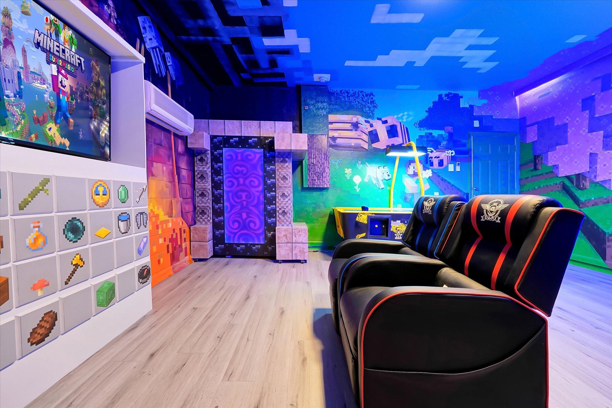 Get ready for hours of fun in the Minecraft-themed game room, complete with: