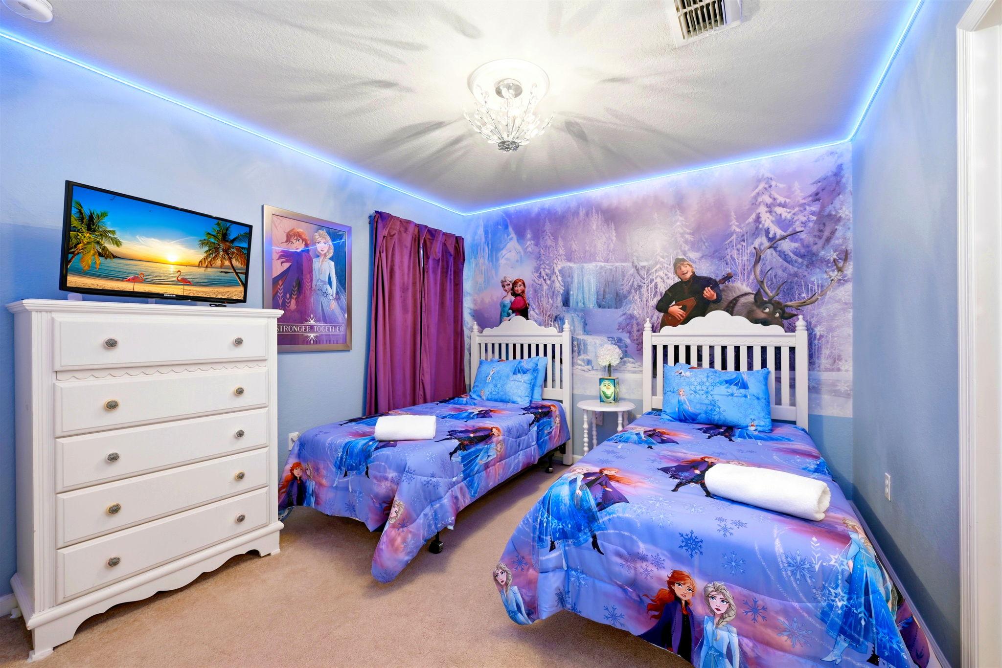 Make magical memories in this recently renovated upscale 5-bedroom Windsor Hills resort villa that sleeps 10, just minutes from Disney and Universal. Unwind in your private pool and hot tub or enjoy the game room. Features 3 king bedrooms, Harry Potter and Frozen themed rooms, all bedrooms with en-suite baths, full kitchen, in-home washer and dryer, and professional cleaning, pool maintenance, and pest control for a worry-free stay.