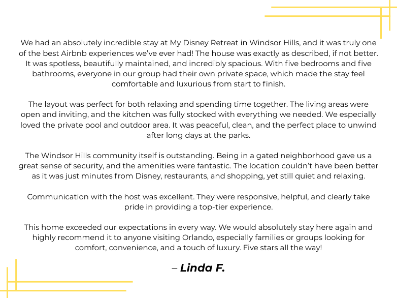 Located in the beautiful gated community of Windsor Hills Resort and just a few miles to Walt Disney World, our 5 bed, 5 bath home is perfect for your family vacation.